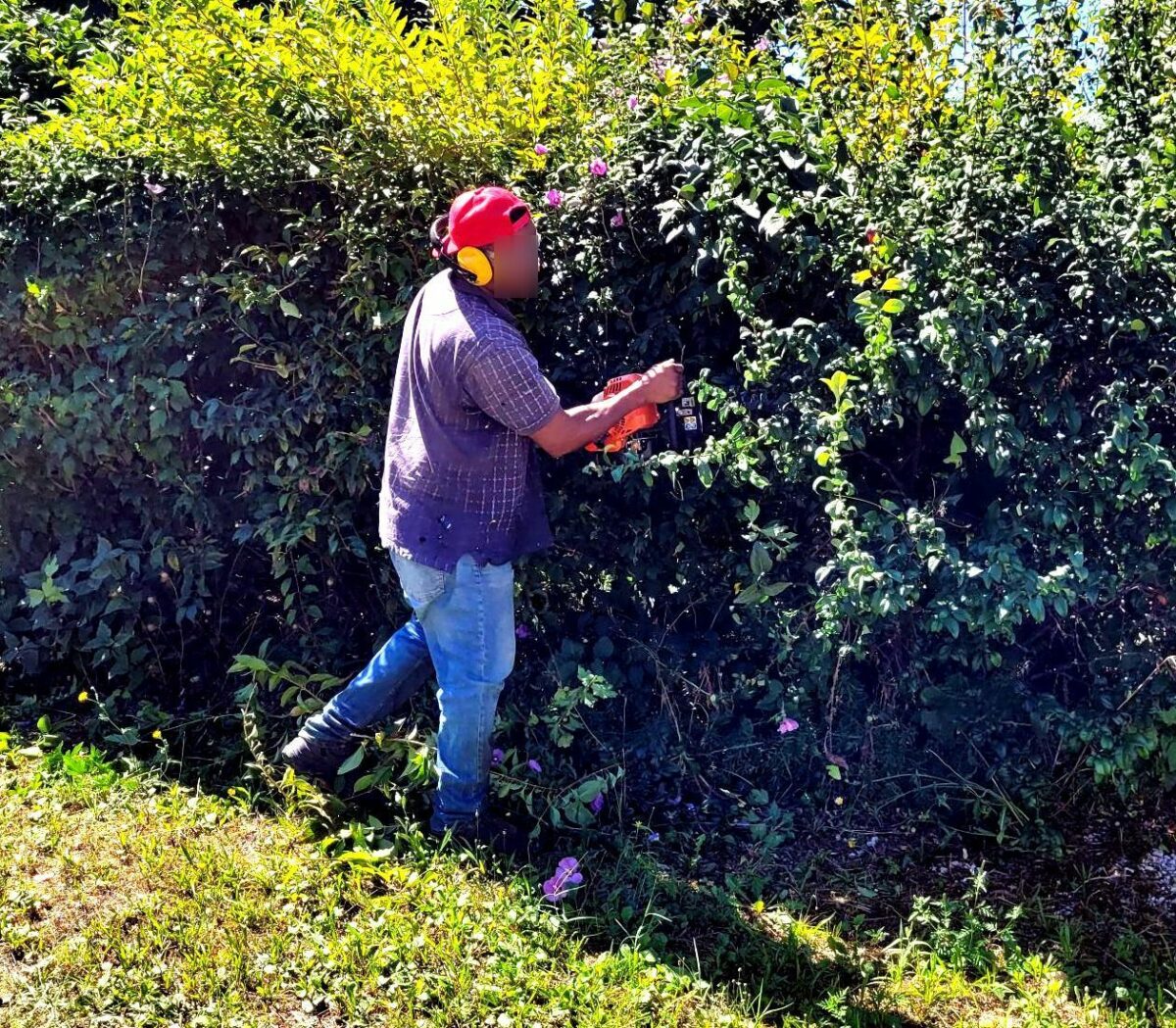 La haie égalisée avec un taille haie sur perche (plus d’efficacité et plus de sécurité)